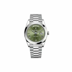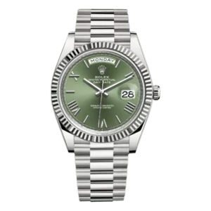 Rolex Day-Date 228345RBR OGRP 18K Everose Gold Diamond Bezel 40mm Olive Green Roman Dial Men’s Watch