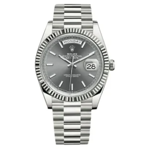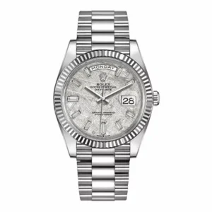 Rolex Day-Date 228239-0055 40Mm White Gold Fluted Bezel Meteorite Baguette Diamond Dial Men’S Watch