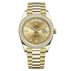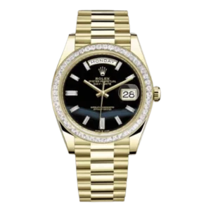 Rolex Day-Date 228238-0059 Yellow Gold 40mm Onyx Baguette Black Dial Men’s Watch