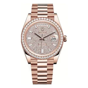 Rolex Day-Date 228345Rbr Dpbdp 40Mm Pave Baguette Rose Gold And Diamond Bezel Men’S Watch