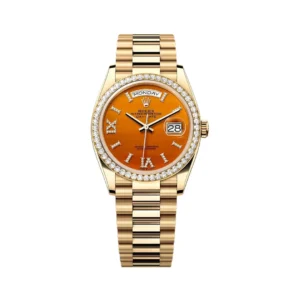 Rolex Day-Date Diamond Bezel 128348RBR-0049 Carnelian Dial Yellow Gold 36mm Women’s Watch