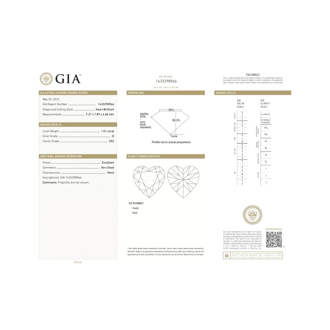 - Heart Diamond: 1 PC 1.50 CT H VS2,1433298966,GIA