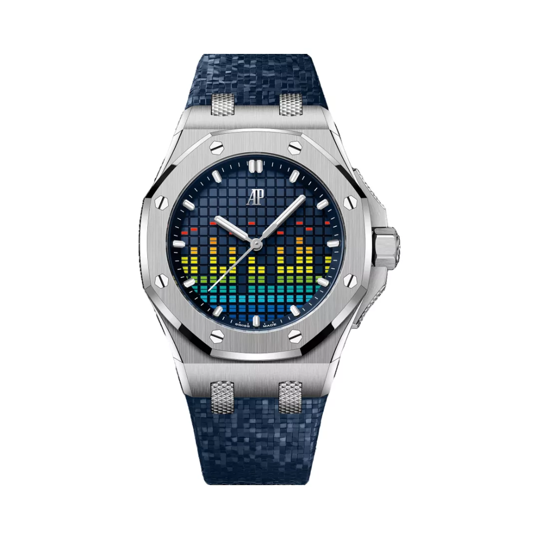 This unique timepiece embodies Audemars Piguet’s commitment to innovation and craftsmanship. The dial mirrors a VU meter, displaying time in a way that echoes the rhythm of music. To carry the theme further, the watch features push-piece guards that resemble mixer faders, adding an edgy touch to the watch’s appearance. The brilliant blue color of the dial gives this watch a touch of charm, ensuring it stands out in any collection.