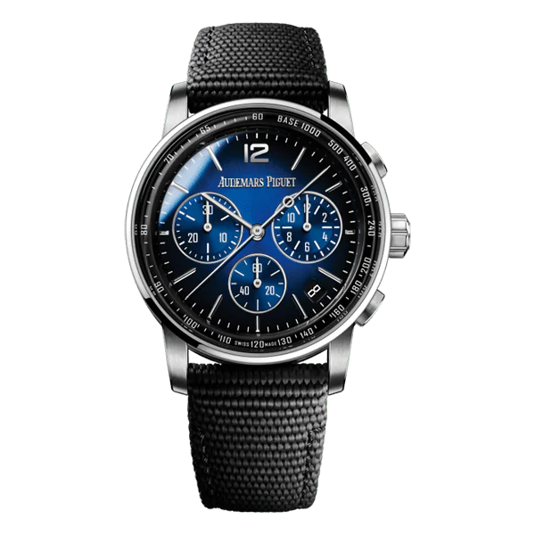 The Audemars Piguet Code 11.59 26393BC.OO.A002KB.01 comes with a black rubber-coated strap, providing both comfort and durability. The 18-carat white gold pin buckle clasp ensures a secure and adjustable fit, allowing you to wear the watch with confidence.