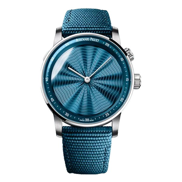 Part of a trilogy of Code 11.59 by Audemars Piguet Grande Sonnerie Supersonnerie, this one-of-a-kind timepiece blends age-old techniques with contemporary design. The 18-carat white gold case is enriched with a bespoke guilloché and flinqué enamel dial in blue hues, crafted in collaboration with engine-turning artisan Yann Von Kaenel and enameller Anita Porchet.