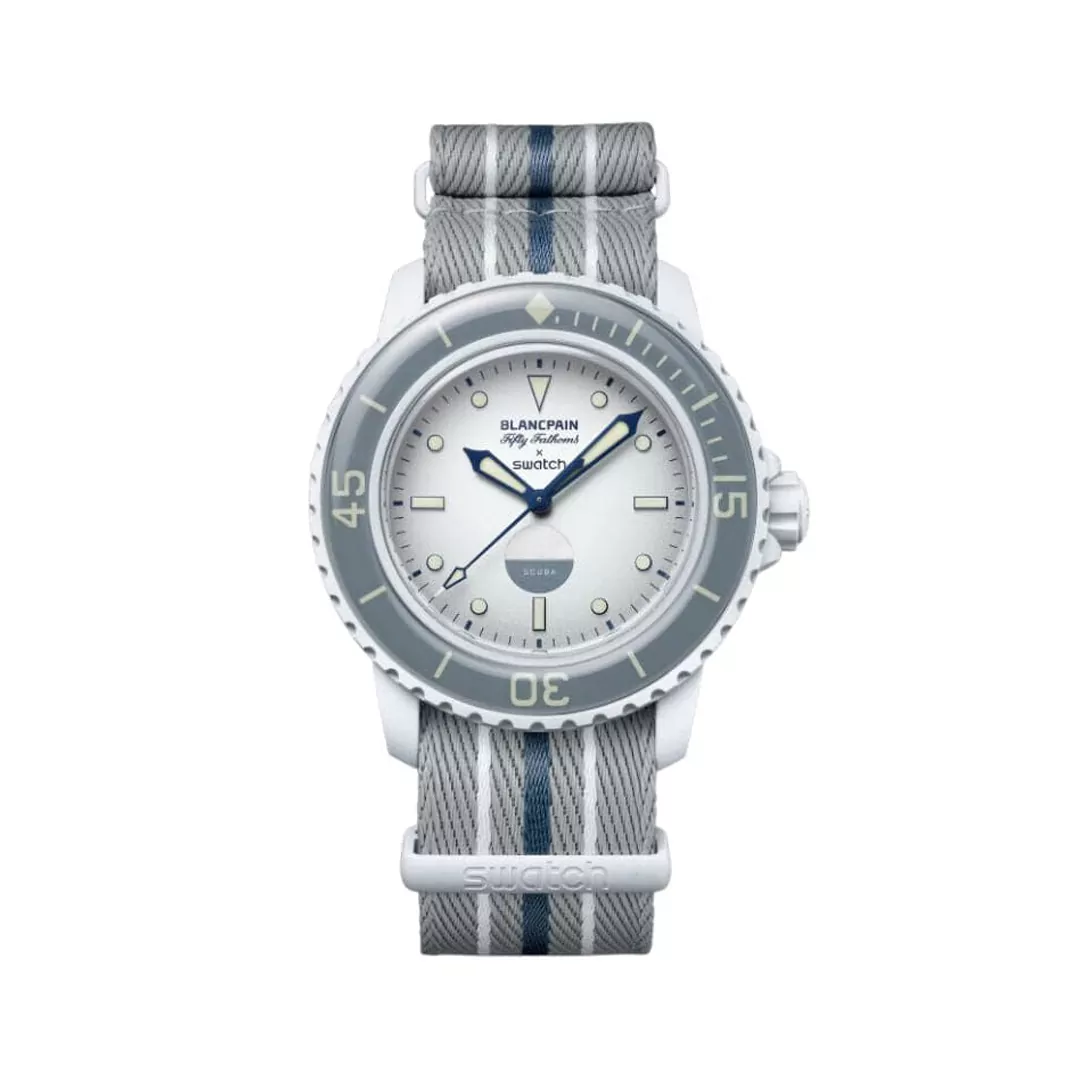 Be the first to review “Blancpain X Swatch Scuba Fifty Fathoms Antarctic Ocean SO35S100 Grey 42.5mm Unisex Watch” Cancel reply