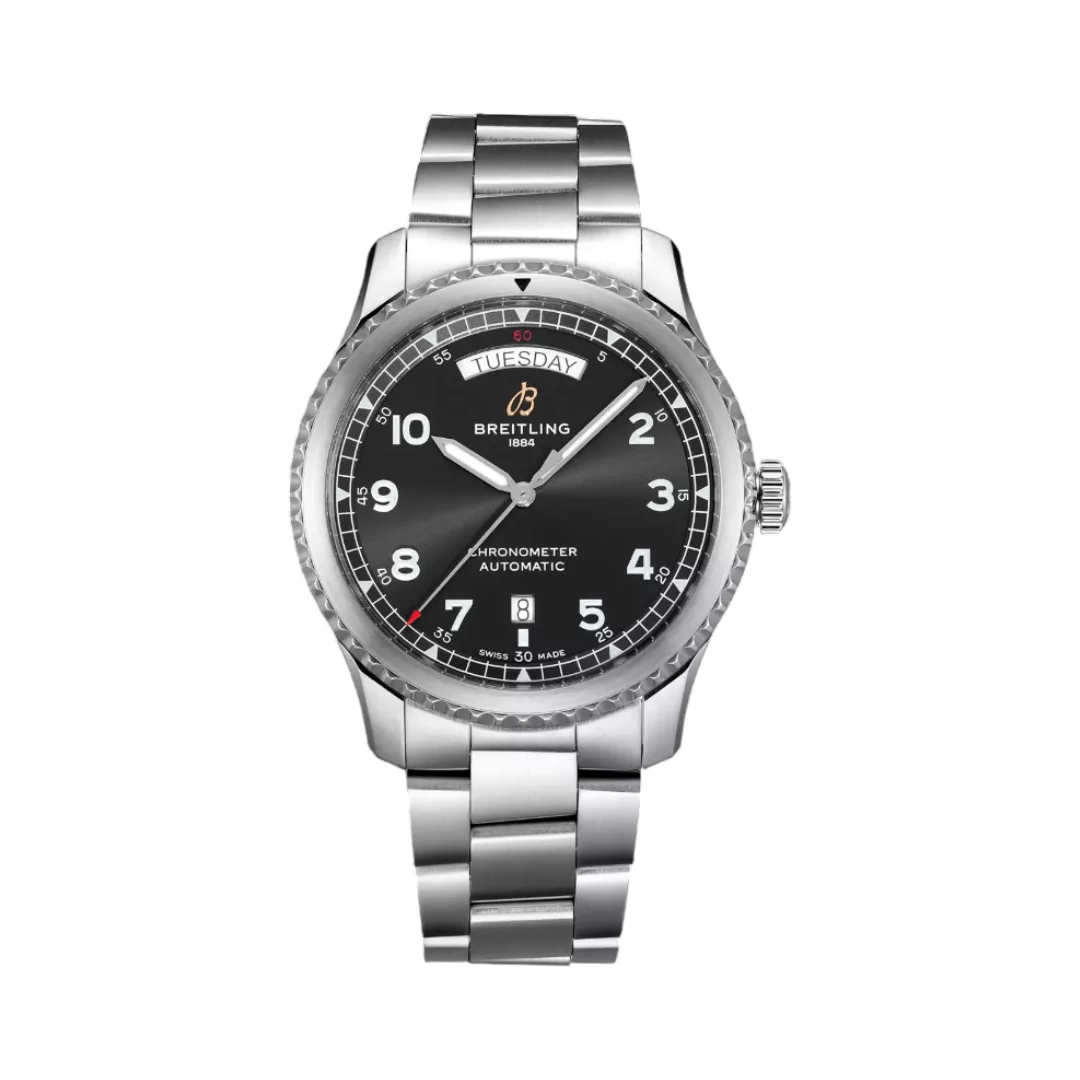 Powered by the Breitling Caliber 45 automatic movement, it offers a 40-hour power reserve, 28,800 vibrations per hour, and 26 jewels. The Navitimer 8 is water-resistant up to 100 meters, making it ideal for daily wear and light water use while showcasing Swiss craftsmanship.