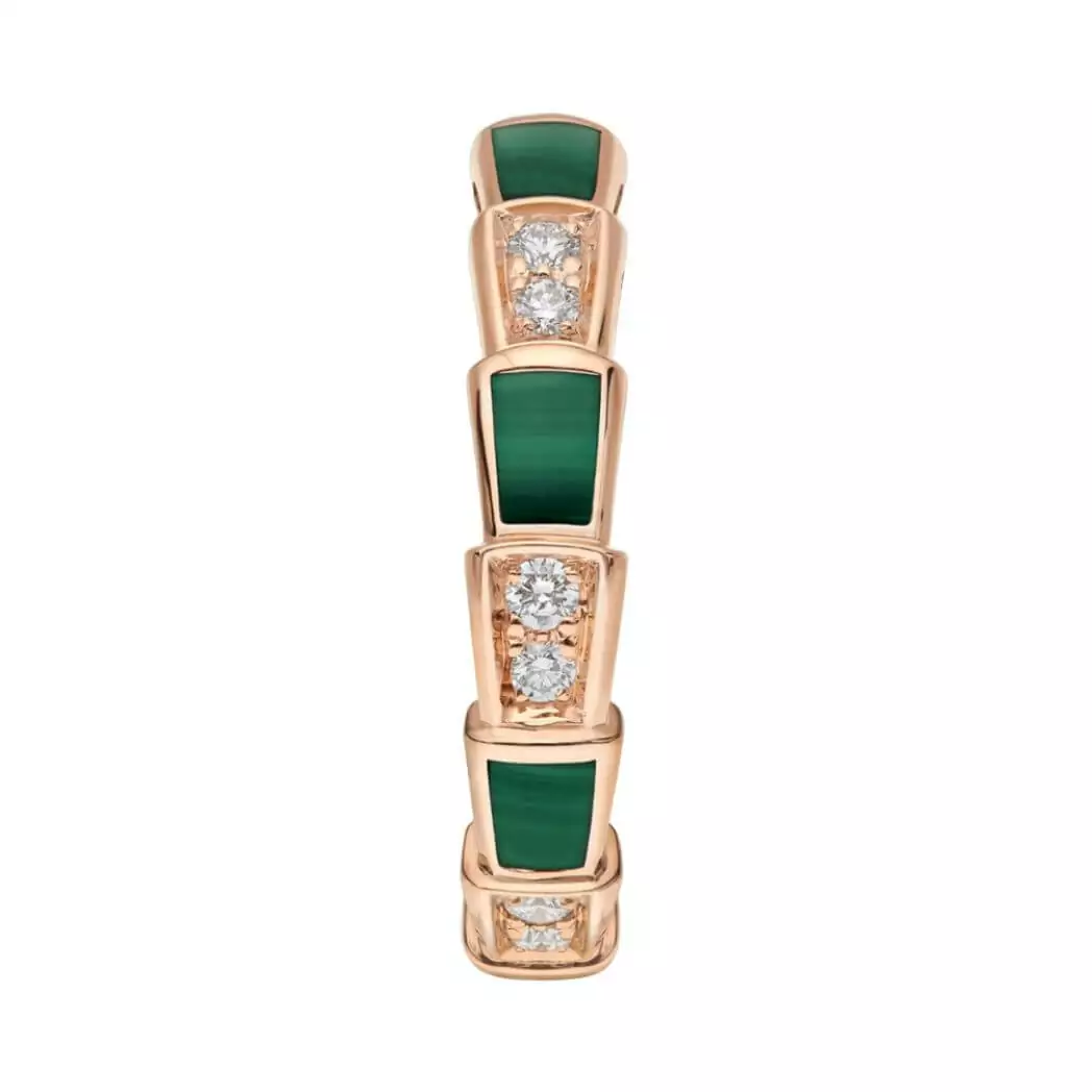 Crafted with precision in Italy, this Serpenti Viper ring features exquisite malachite inserts and pavé diamonds, creating a breathtaking interplay of light and shadow.