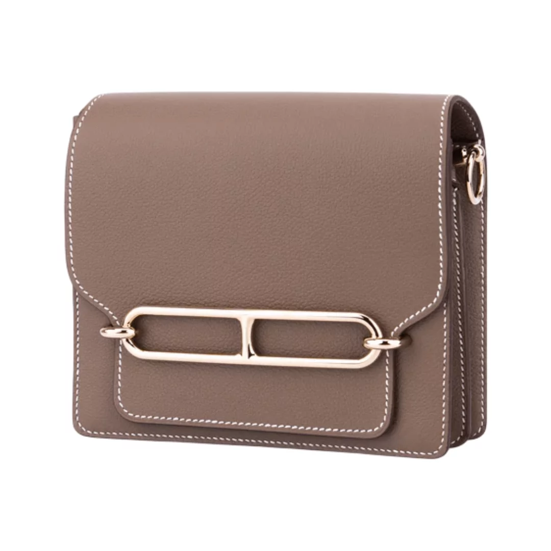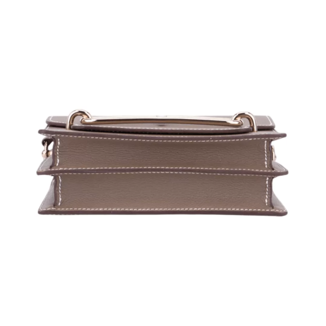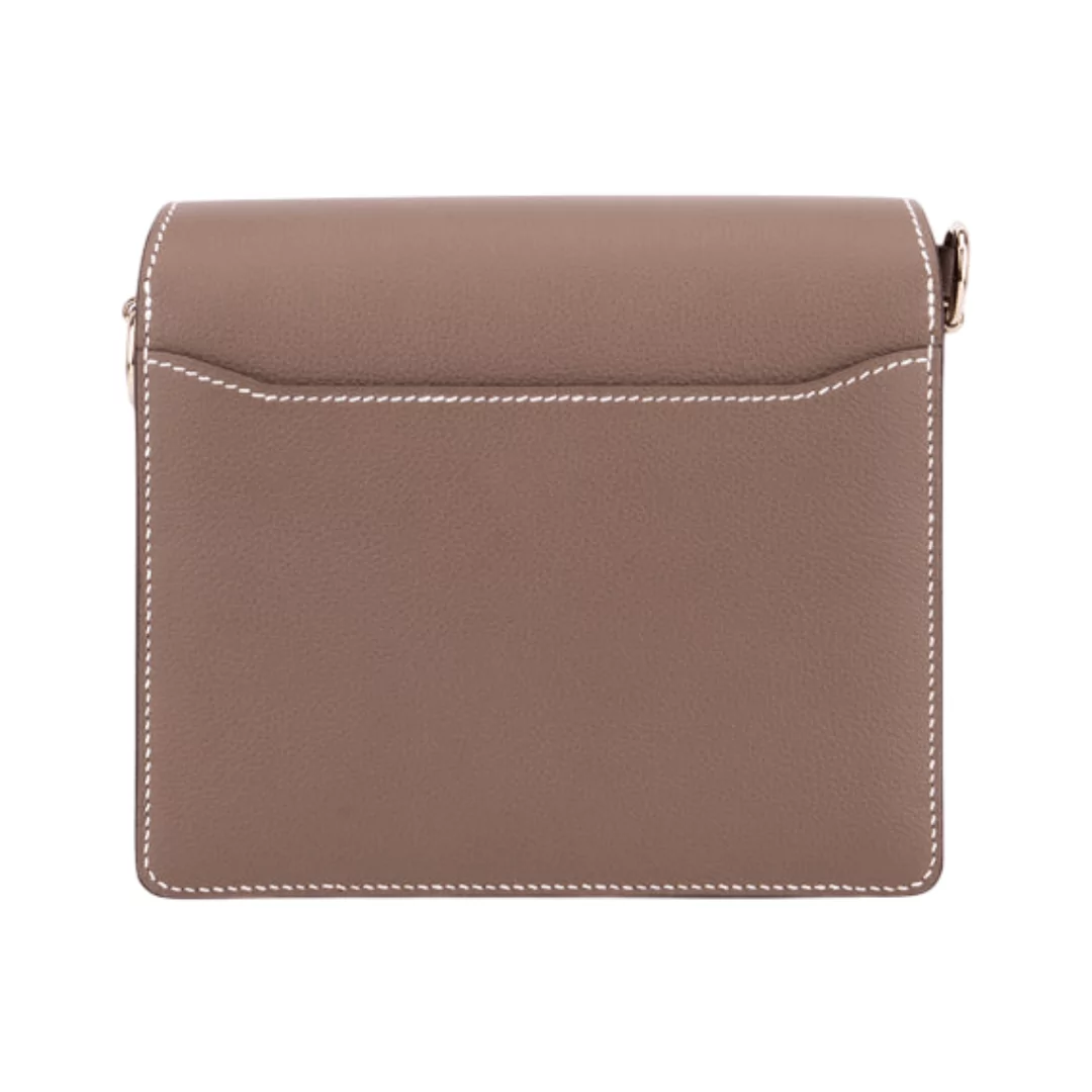 The Hermes Roulis 18 Mini Taupe Evercolor is a stylish and compact handbag crafted from smooth Evercolor leather in a rich taupe brown shade. Designed for women who love elegance in a small size, this chic mini bag features shiny palladium hardware that gives it a refined and polished look.