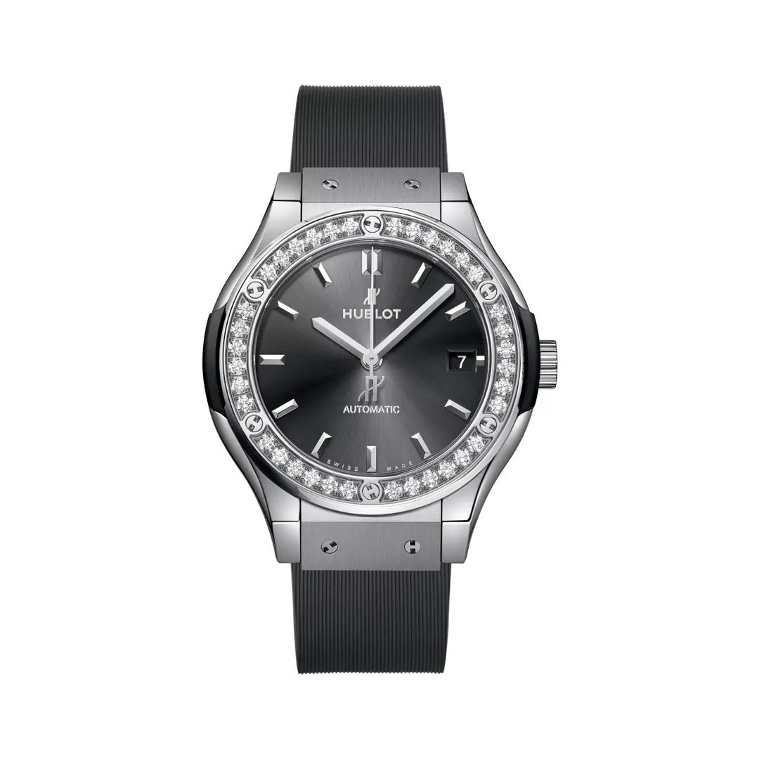 Hublot Classic Fusion 581.NX.1470.RX.1104 Titanium Diamonds Black Dial 33mm Ladies Watch