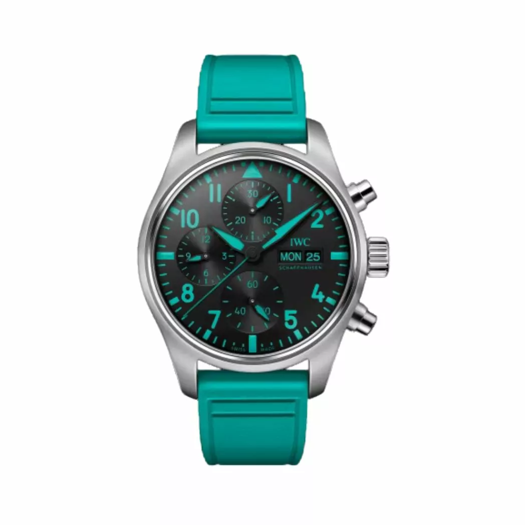 Introducing the IWC Pilot’s Watch Chronograph “Mercedes-AMG Petronas Formula One™ Team” Watch, a symbol of precision and style. Crafted with attention to detail, this timepiece is the first official collaboration between IWC and the Mercedes-AMG Petronas Formula One team.