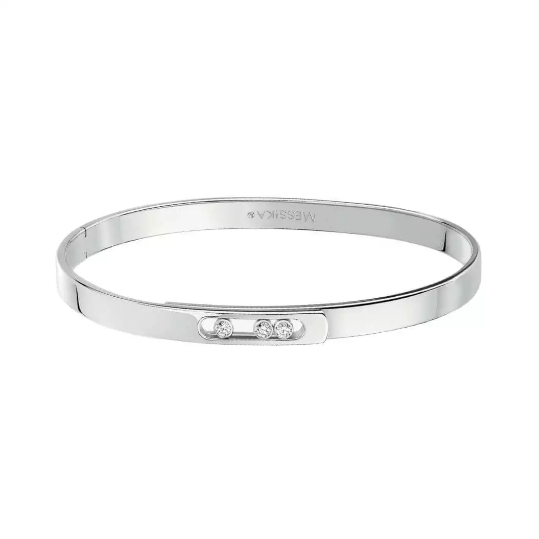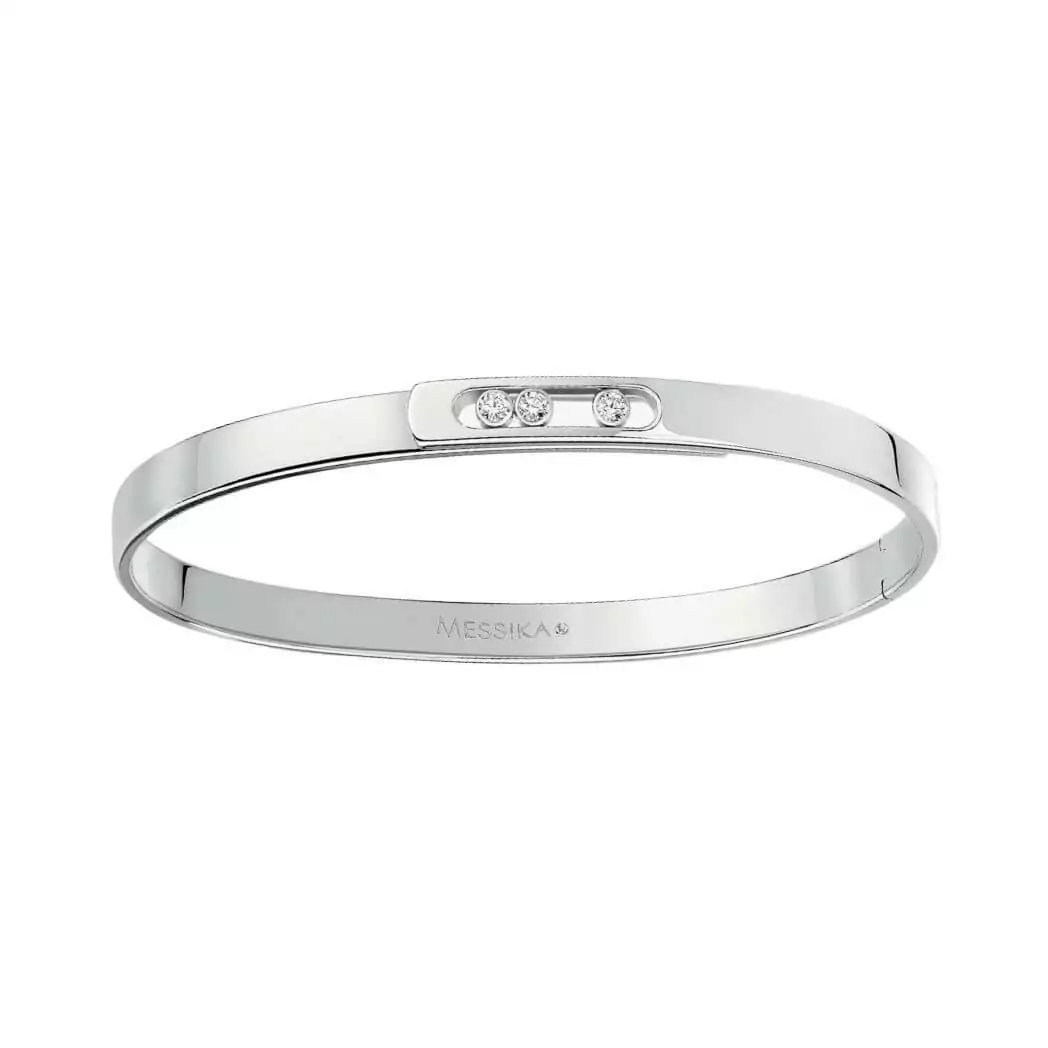 Step into a world of refined design with the Messika Move Noa Bangle 10092-WG White Gold Diamond Bracelet. This exquisite piece has been thoughtfully reinvented to gracefully embrace the curves of your wrist while maintaining its true essence. The sleeker design not only captivates but also lends itself perfectly to stacking with other pieces, allowing you to express your unique style.