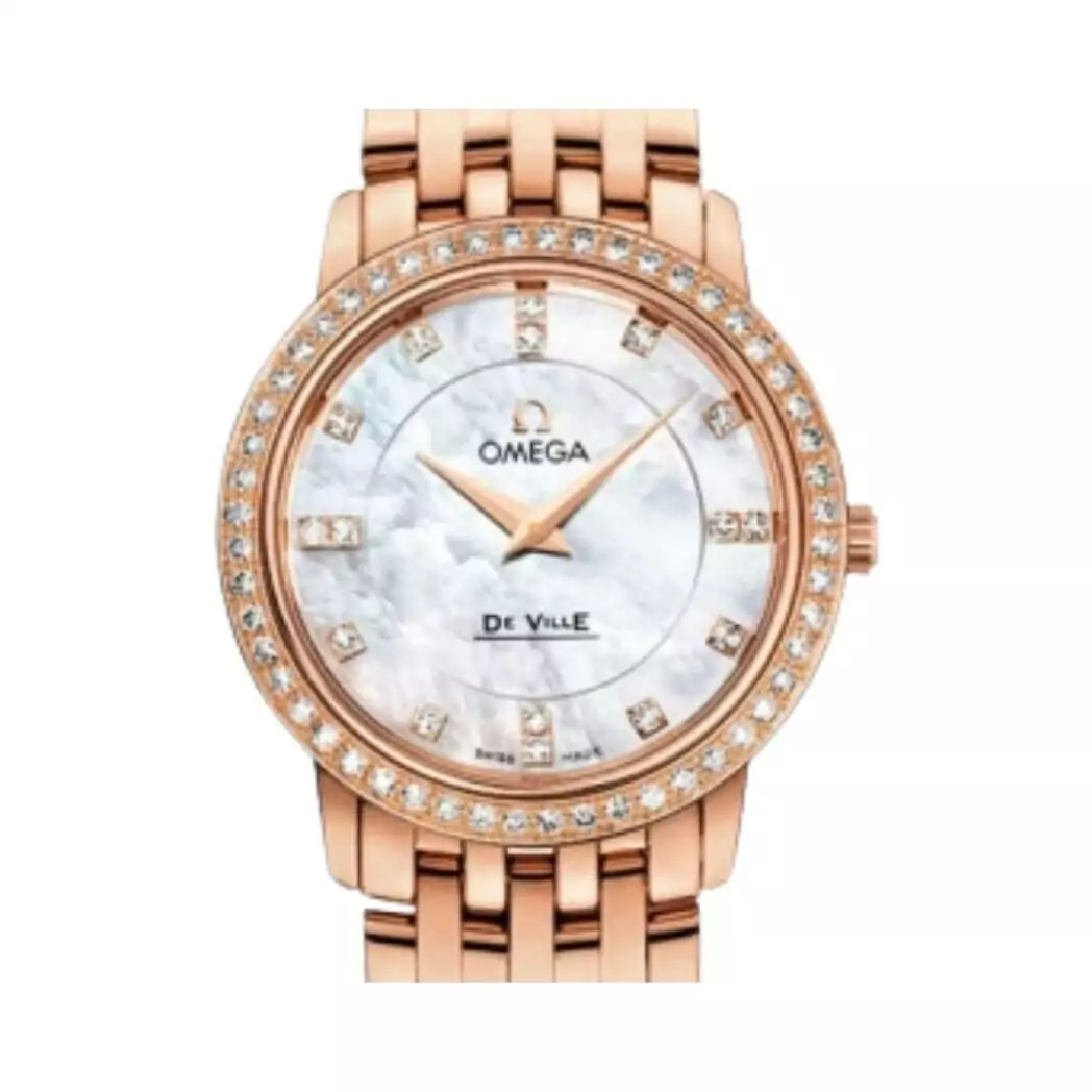 From the mesmerizing mother-of-pearl dial to the meticulously crafted red gold case and bracelet, every detail of the Omega De Ville Prestige Quartz 413.55.27.60.55.002 exudes sophistication and charm.