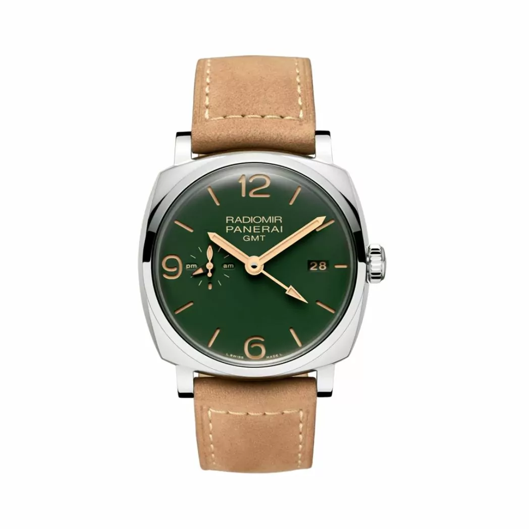 The Panerai Radiomir Pam00998 features a striking green dial housed in a sturdy stainless steel case. The 45mm round case adds a bold and masculine touch to the watch, making it a standout accessory for any occasion.