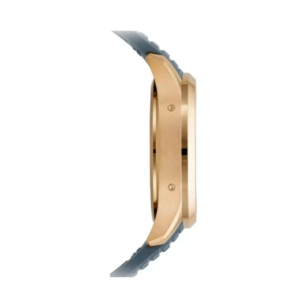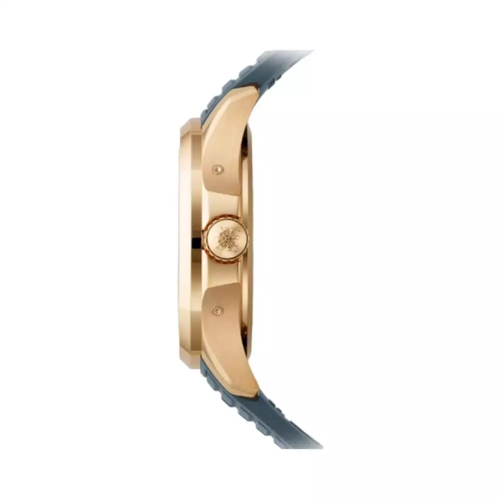 The watch’s aesthetic is a blend of “sporty chic” that embraces modern trends while maintaining the timeless essence of luxury. The striking blue-gray dial adds a contemporary touch, creating a captivating contrast against the rose gold case. The composite strap, featuring the signature Aquanaut pattern, not only complements the watch’s style but also ensures a comfortable fit on your wrist.
