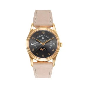 The Patek Philippe Aquanaut 5167A-001 has numbers on the dial that make it easy to tell the time. There are little marks around the edge of the dial that help you be even more precise. The watch works on its own with a special mechanism inside that keeps the time accurate. It also has other handy features like showing the date, a hand that moves smoothly to count the seconds, a display that tells you how much power is left, and a way to know if it’s day or night.