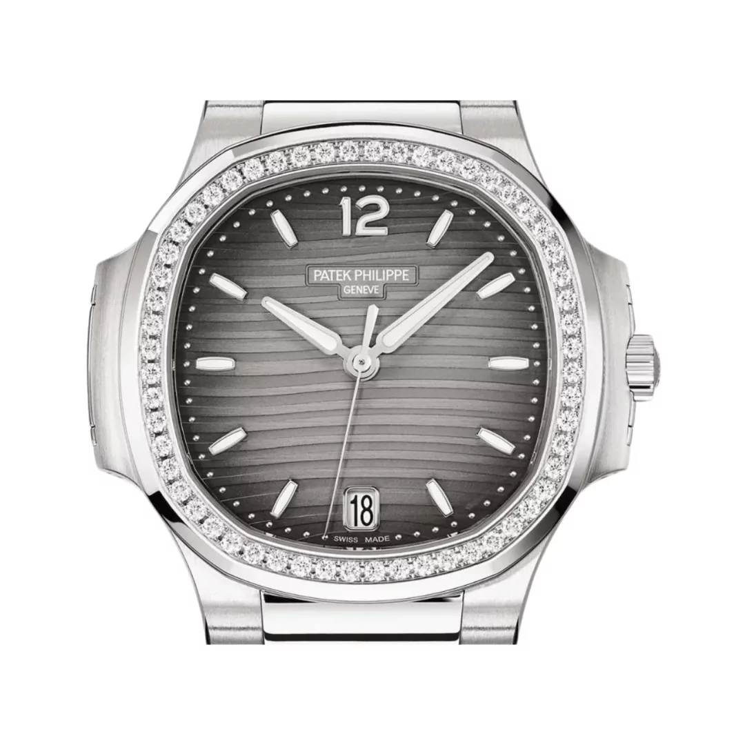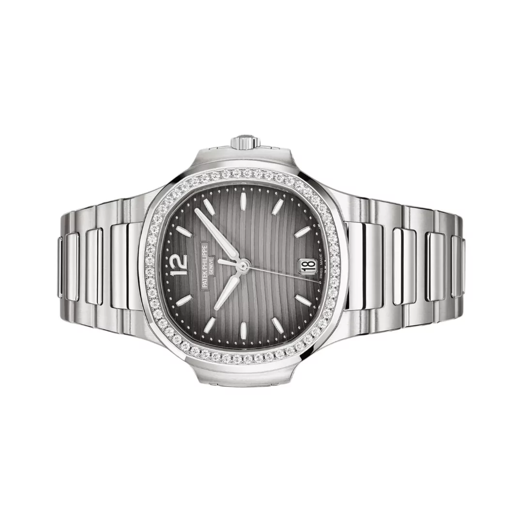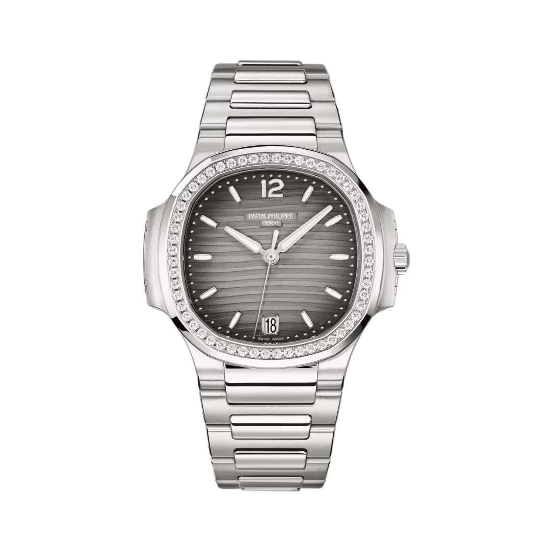 The Patek Philippe Nautilus 7118/1200A-011 Gray Opaline is a beautiful women’s watch that is both stylish and practical. It has a bezel decorated with diamonds and a striking gray opaline dial, making it a standout accessory for your wrist.