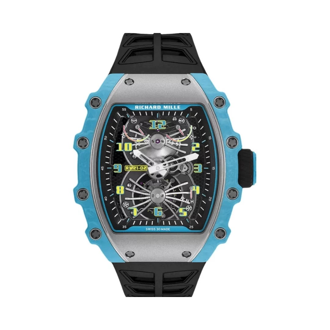 The Richard Mille RM 21-02 Blue is a high-end sports watch, crafted with advanced materials and precision engineering. This limited edition timepiece is one of only 50 pieces worldwide, making it a rare collector’s item.