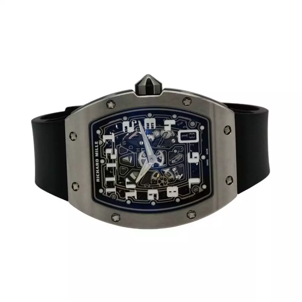 The Richard Mille Rm 67-01 Titanium stands out as a masterpiece in watch engineering, seamlessly combining technical precision with an elegant design. The challenge of crafting a thin automatic timepiece is met with finesse, as the watch not only achieves an extra-flat profile but also incorporates a visually striking depth in its movement, reflecting Richard Mille’s distinctive approach.