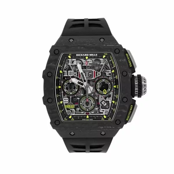 Richard Mille RM11-03 CA TPT Flyback Chronograph NTPT Carbon Dial 45mm x 50mm Black Rubber Straps Men’s Watch