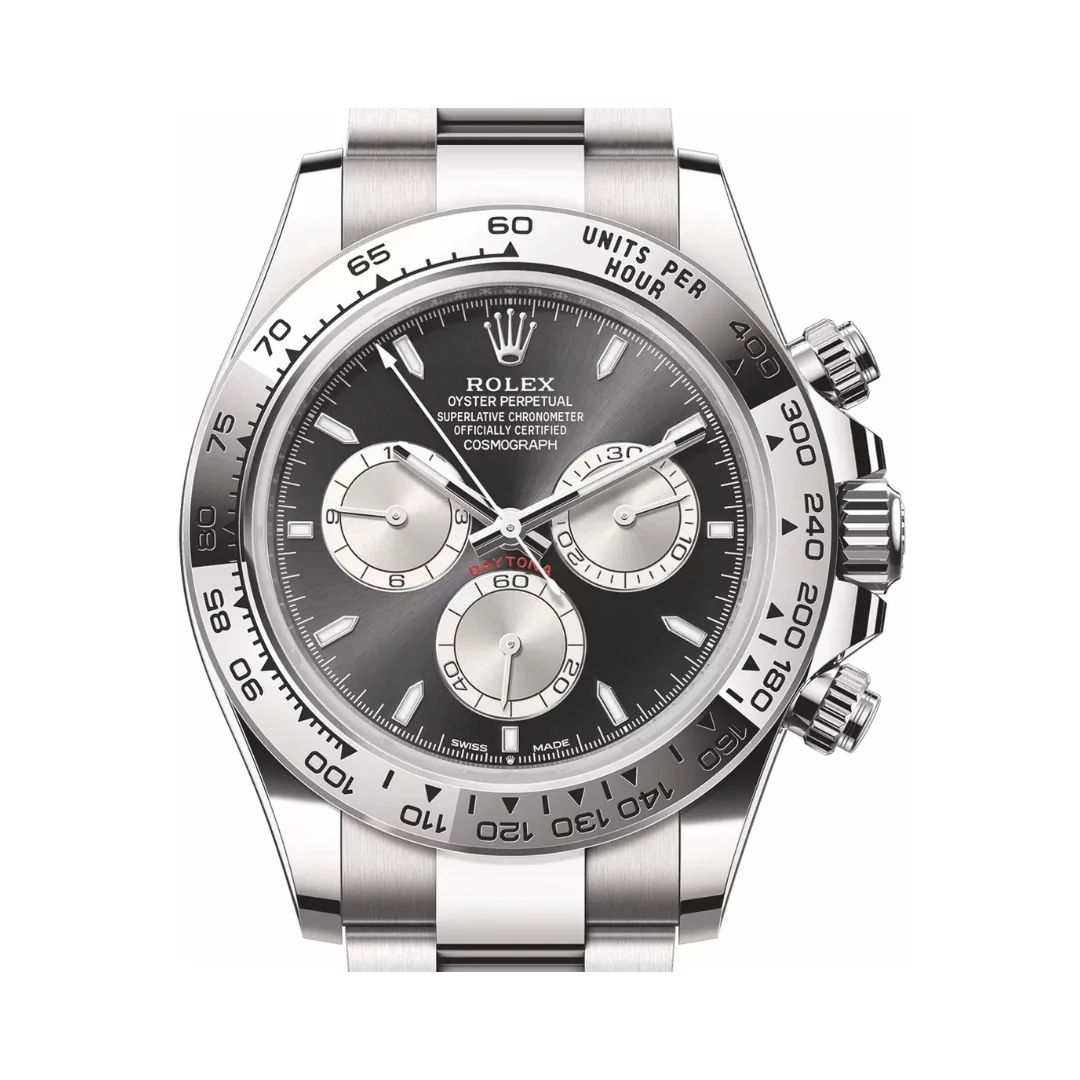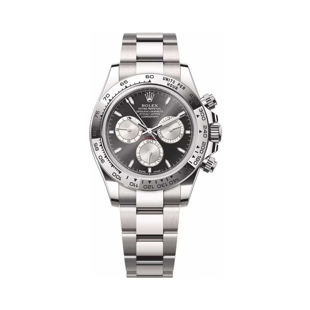 The Rolex Cosmograph Daytona 126509-0001 stands out with its luxurious 18-karat white gold case, crafted for both elegance and durability. Measuring 40 mm in diameter, this case size fits comfortably on the wrist while maintaining a stylish and bold appearance. The scratch-resistant sapphire crystal ensures a clear view of the dial and is tough enough to resist daily wear, adding longevity to the watch.