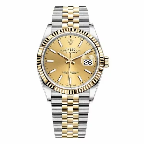 Rolex Datejust 126233 CHIJ Champagne Index Dial Fluted Bezel 36mm Oystersteel and Yellow Gold Unisex