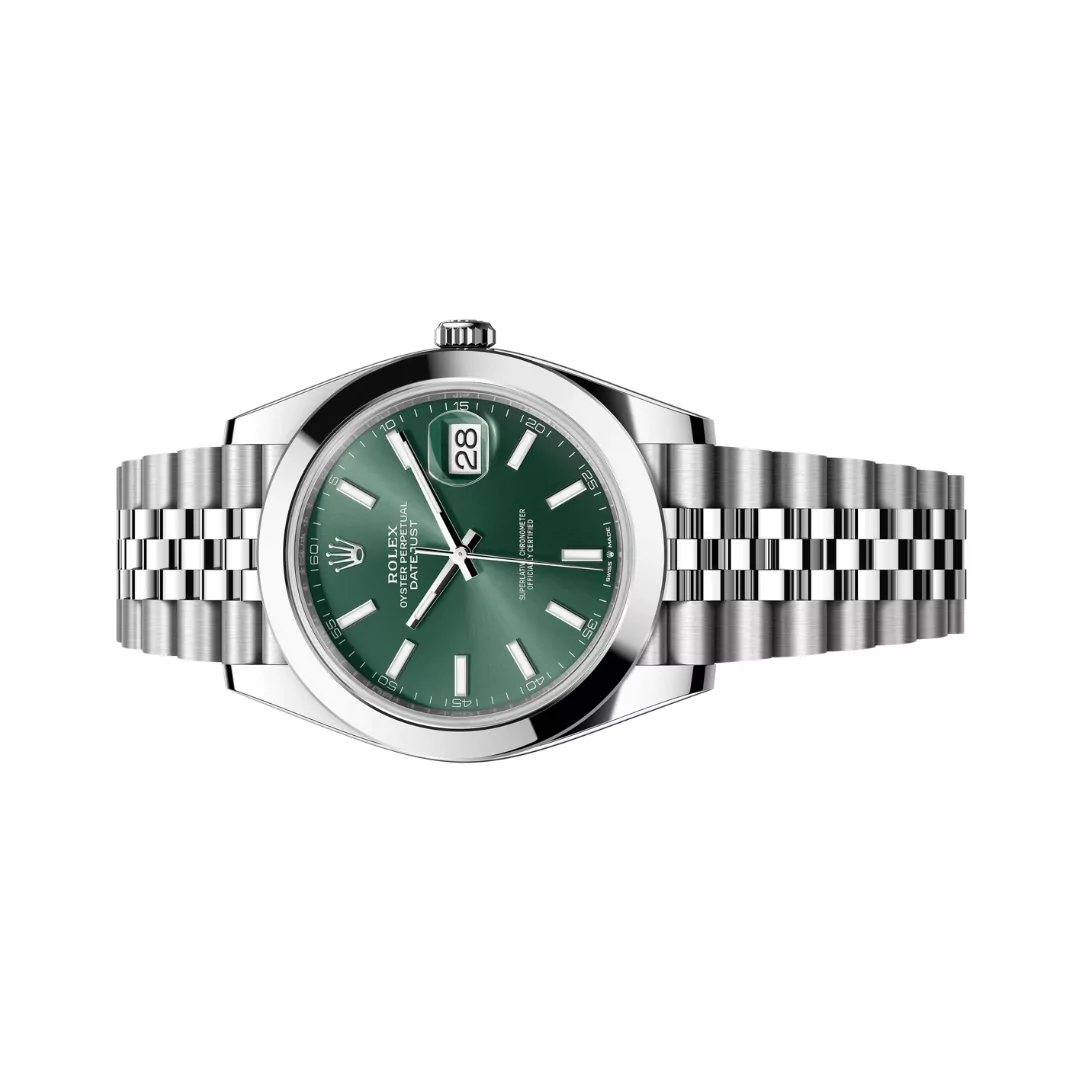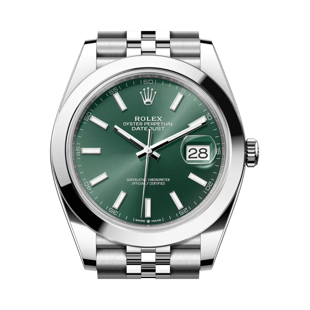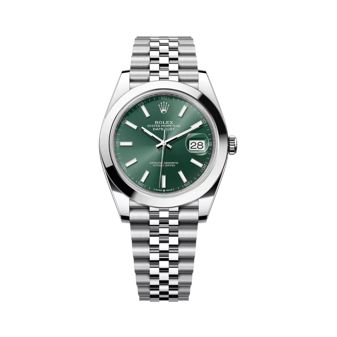 Rolex Datejust 126300-0013 Oyster Perpetual 41mm Green Roman Numerals Grey Dial Mens Watch