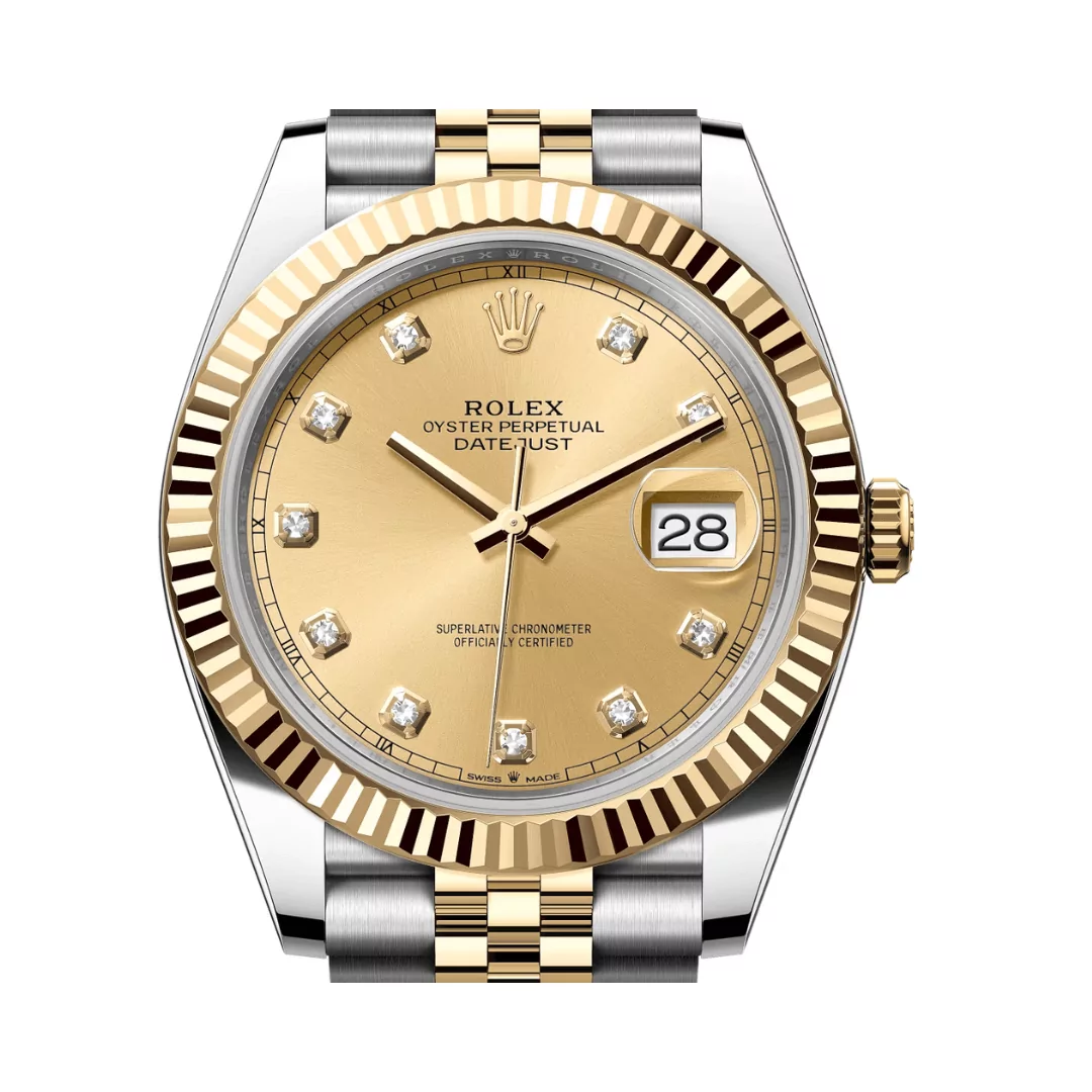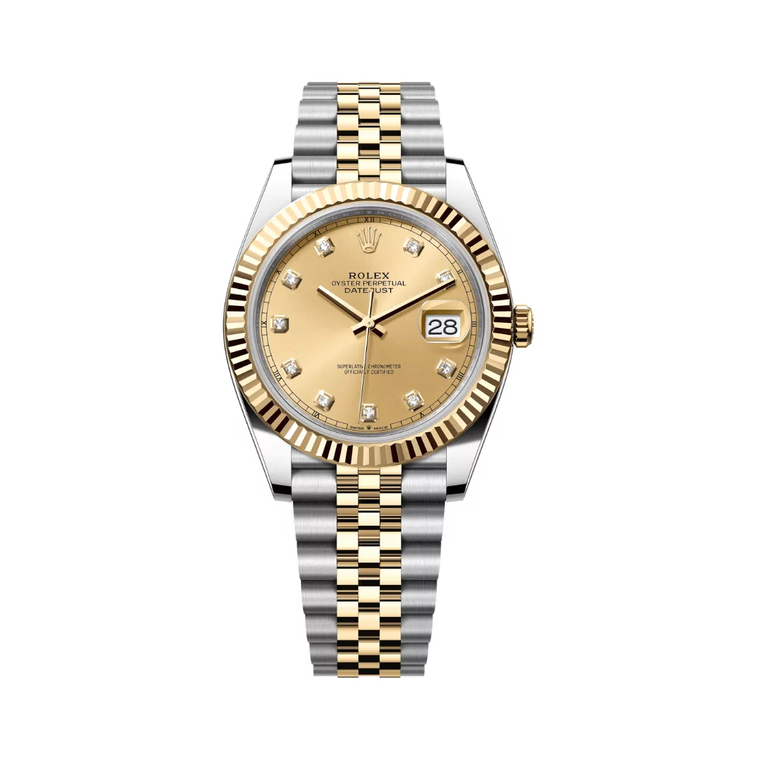The Rolex Datejust 126333-0012 Oystersteel is a classic men’s watch made for everyday luxury. It features a strong 41mm Oyster case crafted from Oystersteel and 18kt yellow gold. The fluted bezel and champagne dial with diamond markers give it a rich and elegant look. The scratch-resistant sapphire crystal includes a Cyclops lens for easy date reading. This watch is waterproof up to 100 meters, making it suitable for daily wear.