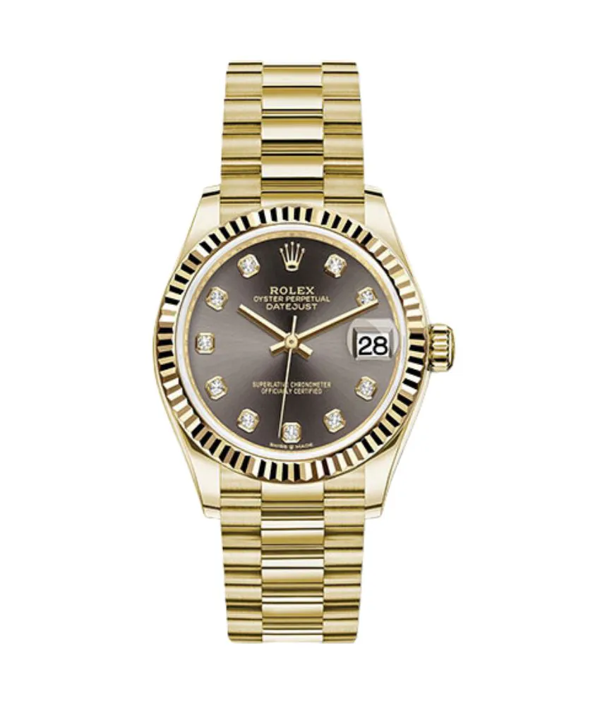 Rolex Datejust M278278-0036 Fluted Bezel Yellow Gold Dark Grey Diamond