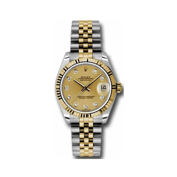 31 mm stainless steel & 18kt yellow gold case, champagne dial, fluted bezel, jubilee bracelet, automatic movement, scratch resistant sapphire crystal, solid case back, deployment clasp, water resistant to 100m/330ft.