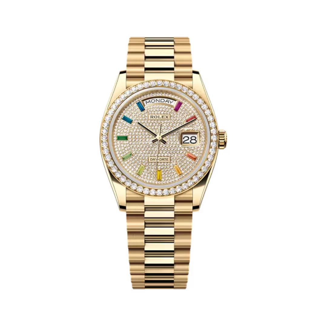 Rolex Day-Date Diamond Bezel 128348RBR-0030 Diamond-Paved Yellow Gold 36mm Women’s Watch