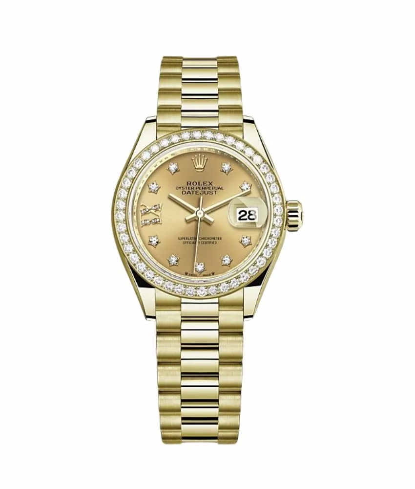 - Case: Oyster, 28 mm, yellow gold and diamonds