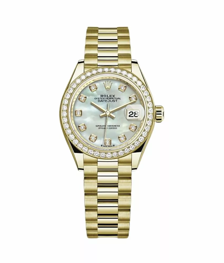 Rolex’s exclusive foundry allows them to create the highest quality 18 ct gold alloys. The Lady Datejust m279138RBR-0015 features 18 ct yellow gold, which is meticulously inspected and tested to ensure its purity and excellence. The watch showcases Rolex’s commitment to using the finest materials and upholding exceptional standards of craftsmanship.
