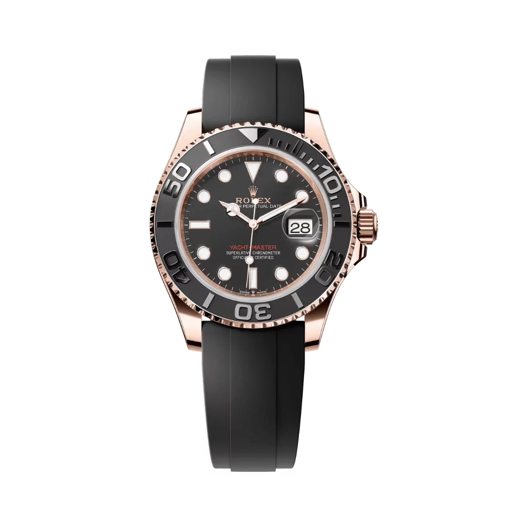The Rolex Yacht Master 126655-0002 is a luxurious men’s watch that combines elegance and performance. It features a 40mm Oyster case crafted from 18 ct Everose gold, paired with a black dial for a bold, stylish look.