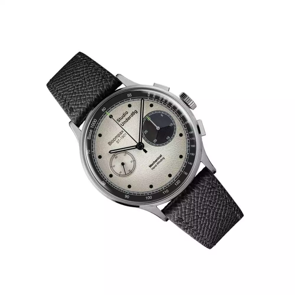 The Studio Underd0g Gen2 BiCompax ST-1901 features sapphire crystals, which provide exceptional clarity and resilience. The double-domed front crystal and flat exhibition back ensure that you can admire the watch’s inner workings.