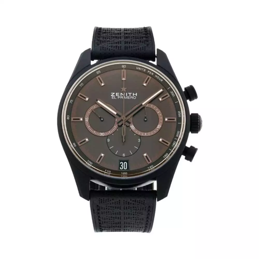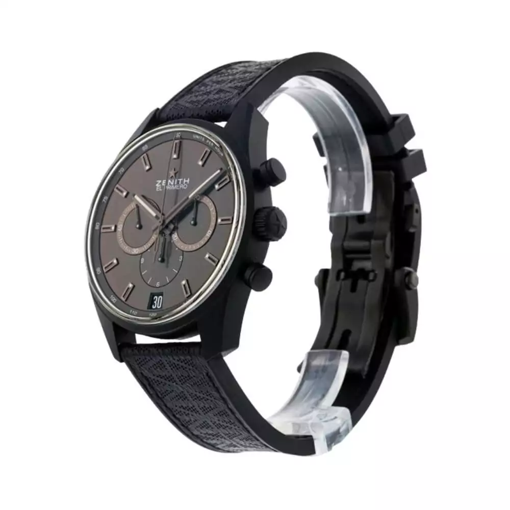 The grey dial of the Zenith Chronomaster adds a touch of sophistication to any outfit. With its clear design and easy-to-read markers, you’ll always know the time at a glance. The anti-reflective scratch-resistant sapphire crystal protects the dial from scratches and ensures it remains crystal clear.