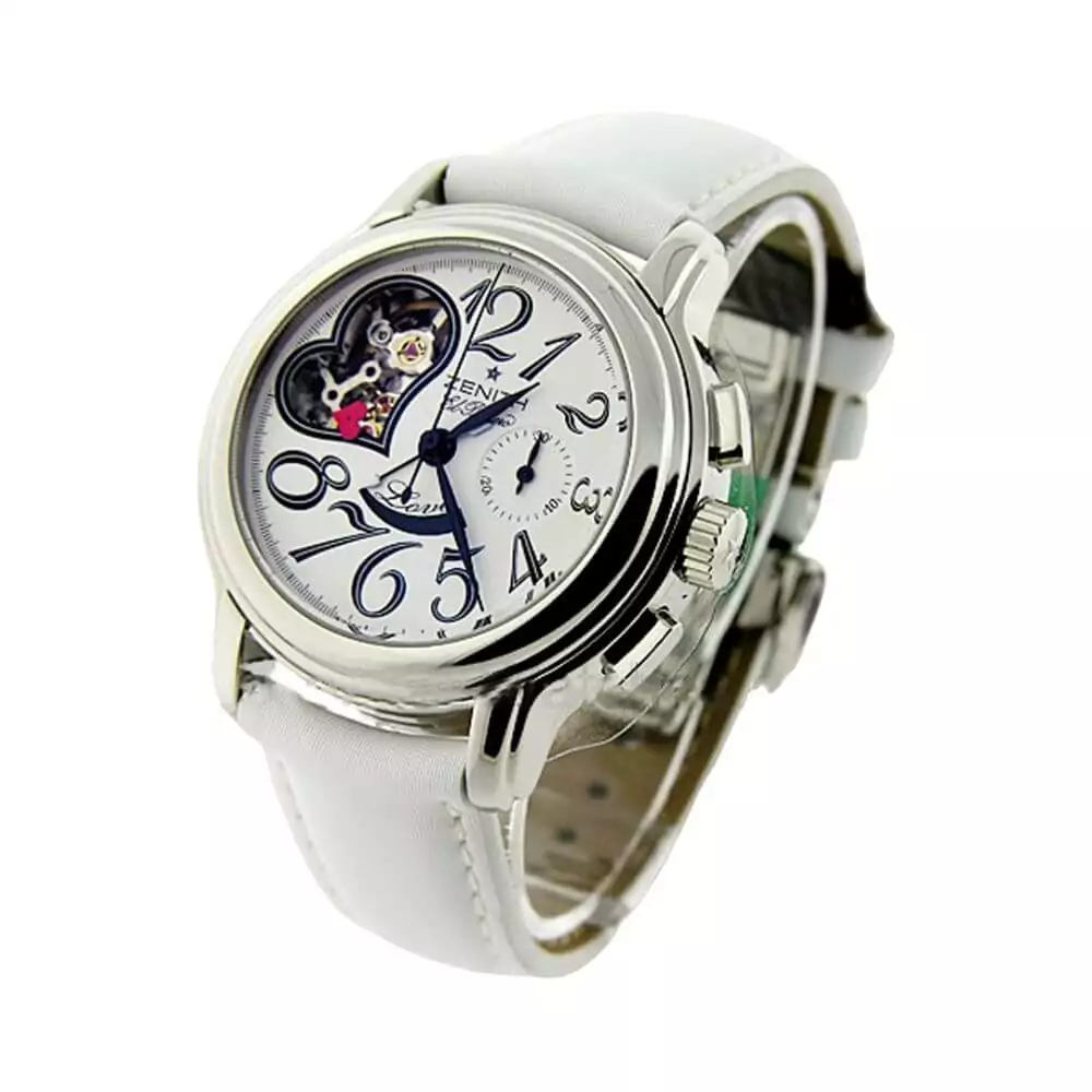 This Zenith watch is not just about looks; it’s packed with useful features. The fixed bezel and transparent case back provide a complete view of the watch’s intricate movement. The deployant buckle on the satin band ensures a secure and comfortable fit, while the automatic movement keeps accurate time with no need for winding.